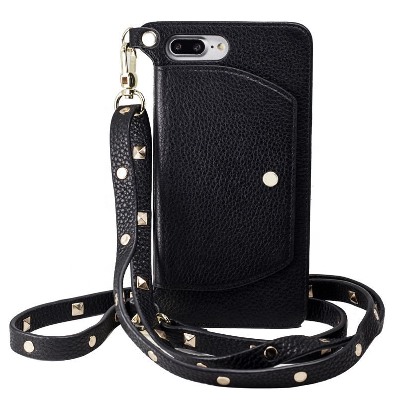 ストラップ付き本革グレインスリムクロスボディ反重力電話ケースネックレスパーソナライズiPhone7/8用携帯電話ケース